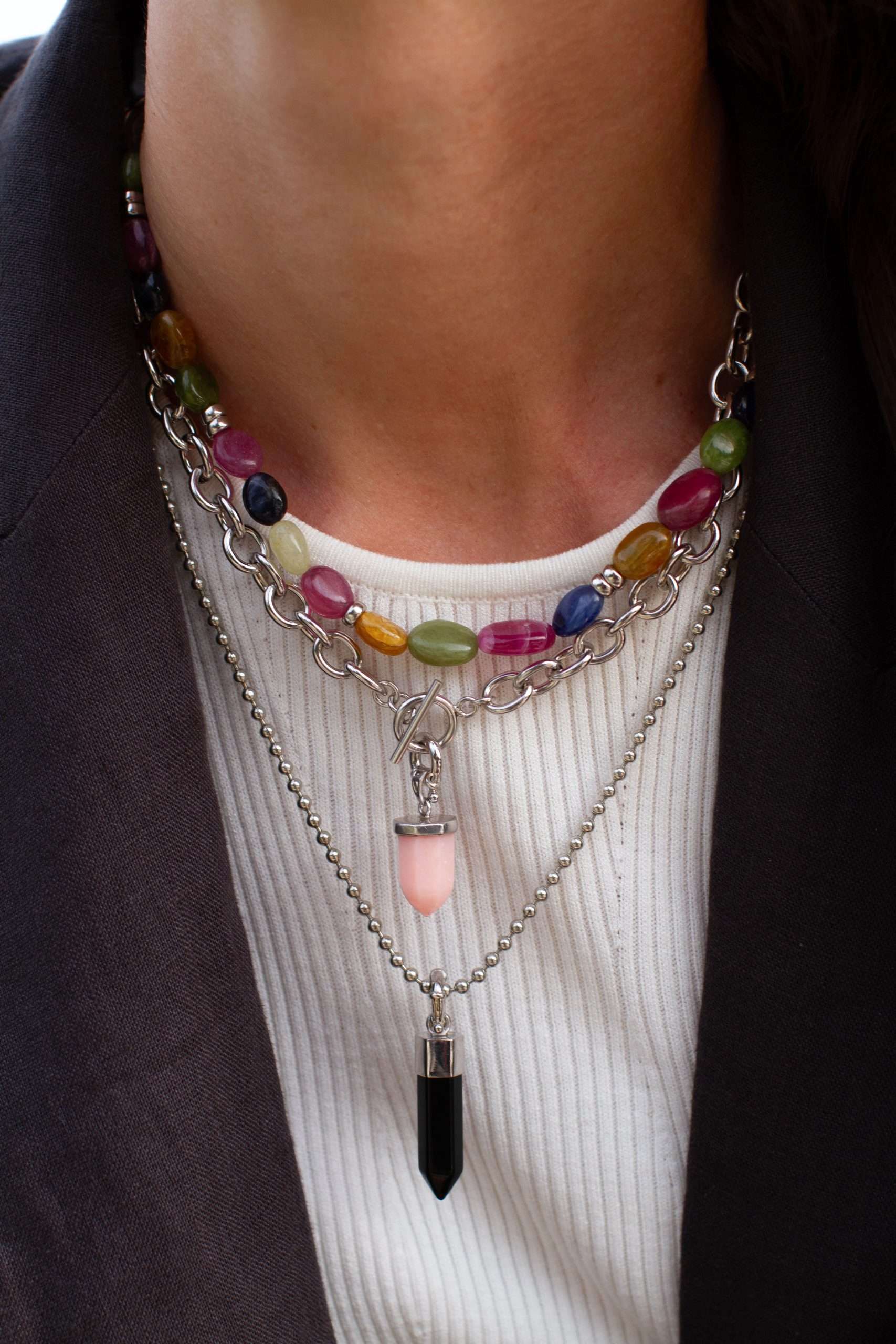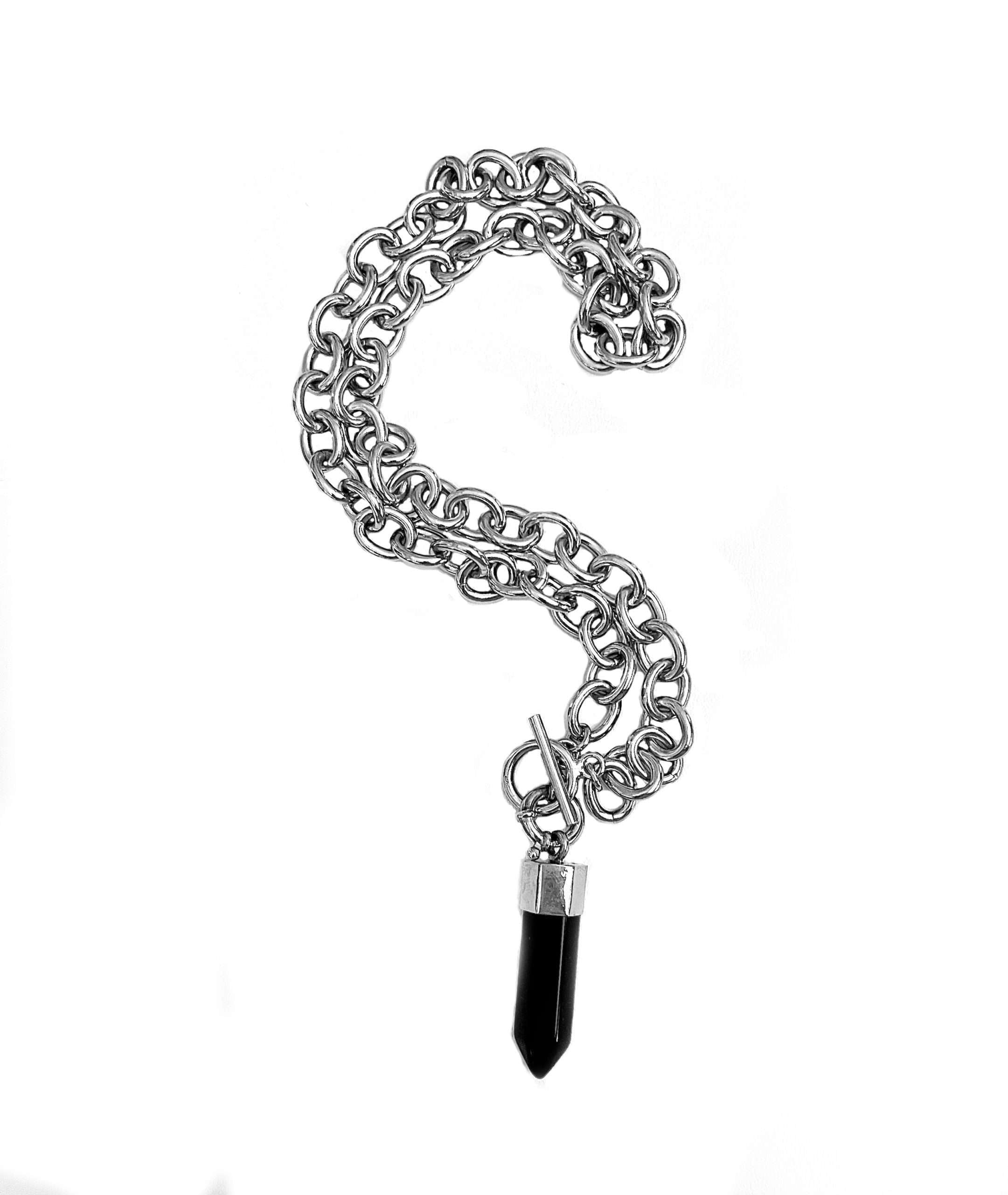 Link Chain with Black Onyx Pendant Charm The sleek black onyx pendant adds a touch of sophistication to any outfit