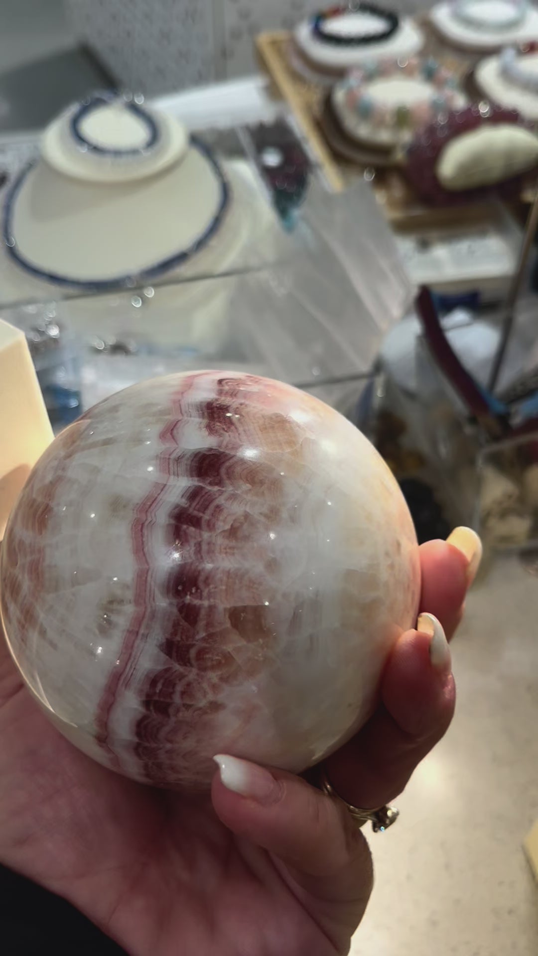 Rhodochrosite comes from the Greek word “rhodos”, which means rose. It is an extremely rare crystal, one of the few locations in the world where they are found is Colorado.