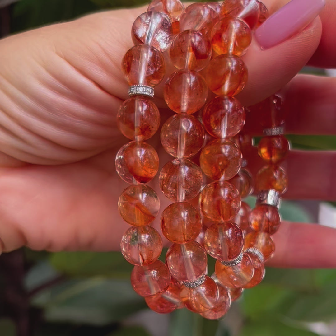 A rare crystal from Madagascar also known as “fire quartz”, hematoid quartz is a fascinating gemstone that combines the beauty of clear quartz with the deep red tones of hematite, which creates a magical sparkling effect. When you take your red hematoid quartz into the sunlight, expect a glittering, mesmerizing display of red, yellow, and orange flames 🔥 within perfect clear quartz.