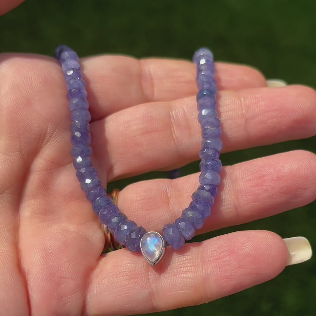 Tanzanite Necklace With Moonstone Pendant